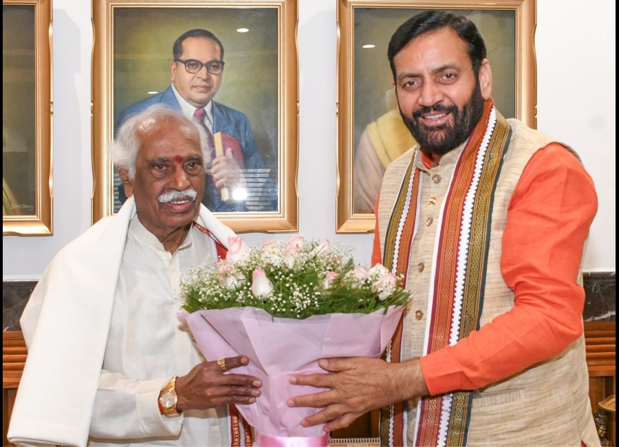 Haryana Chief Minister Shri Nayab Singh Saini paid a courtesy visit to Hon’ble Governor Shri Bandaru Dattatreya at the Haryana Raj Bhavan.