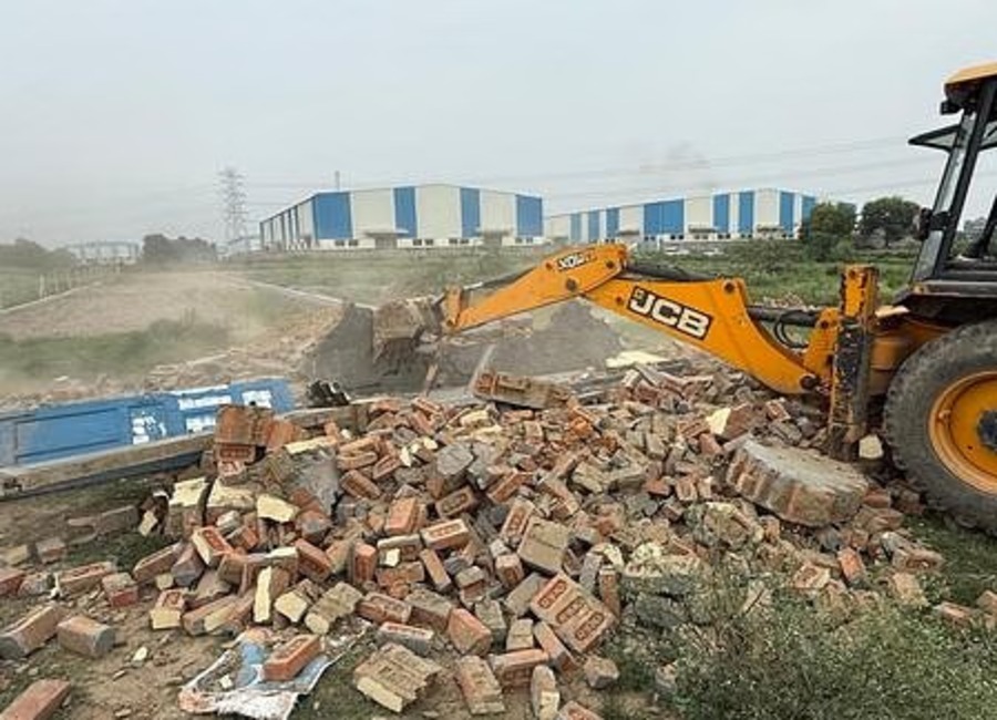 On Tuesday, the District Town Planner's department in Sonipat took action against illegal construction in village Kheri Manajat. An unauthorized colony was being developed on 4.5 acres of government land near the Delhi-Panipat railway line. The site included 8 DPCs (damp proof courses), a WBM road, and a dealer’s office. With the support of the district administration, all illegal structures were demolished using a bulldozer.
