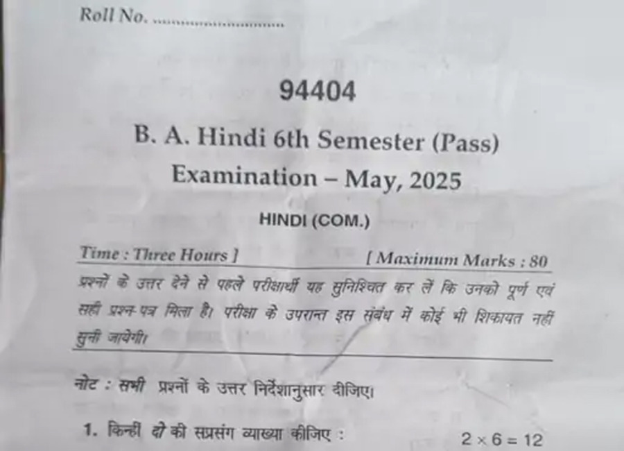 In a serious lapse of examination integrity, the BA Hindi 6th semester paper of Maharshi Dayanand University (MDU) was leaked today in Sonipat shortly after the exam began. The leaked paper surfaced at photocopy shops, where a large number of students were seen getting copies made. Neither the university administration nor the police were initially aware of the leak.