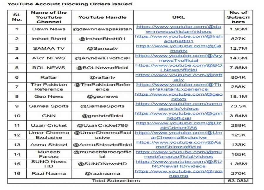 भारत सरकार ने उन सभी चैनलों को प्रतिबंधित कर दिया है, जिन पर भारत, भारतीय सेना और सुरक्षा एजेंसियों के खिलाफ भड़काऊ, साम्प्रदायिक रूप से संवेदनशील सामग्री और झूठे व भ्रम फैलाने वाले नैरेटिव प्रसारित करने के आरोप लगे थे।